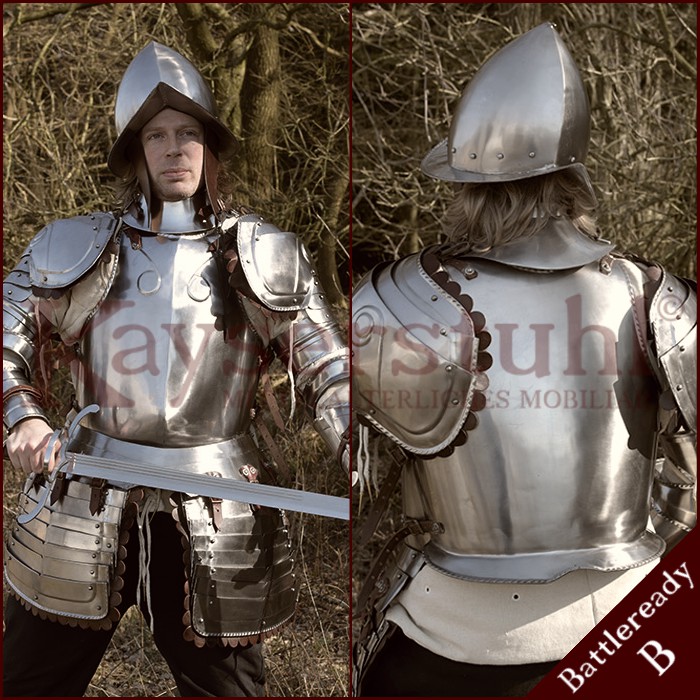 Die typische Rüstung eines Fußsoldaten des 16. Jahrhunderts ist prädestiniert für Leib- und Stadtwachen oder Pikeniere.