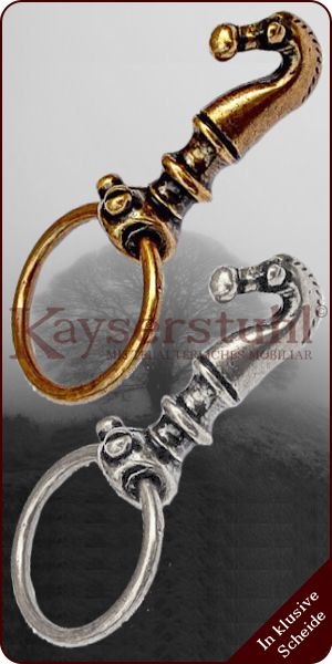 Der Keltische Gürtelhaken ist mit einem 3,8 cm großen Rundring versehen, mit dem er an einem Lederriemen oder an einer Kette befestigt werden kann. Der Gürtelring für die Gegenseite liegt bei.