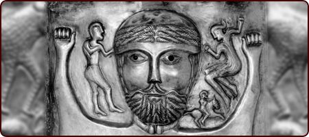 Bild unten: Der "Kessel von Gundestrup" ist ein reich verzierter silberner Kessel aus der La-Tène-Zeit. Er wurde nahe Gundestrup im jütländischen Himmerland gefunden (Dänisches Nationalmuseum in Kopenhagen).