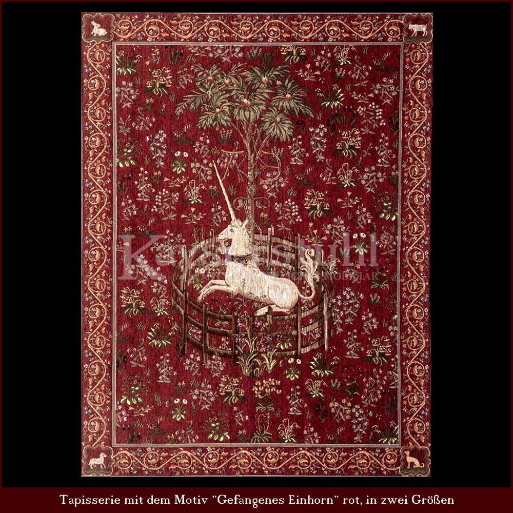 Tapisserie "Gefangenes Einhorn", rot NEU