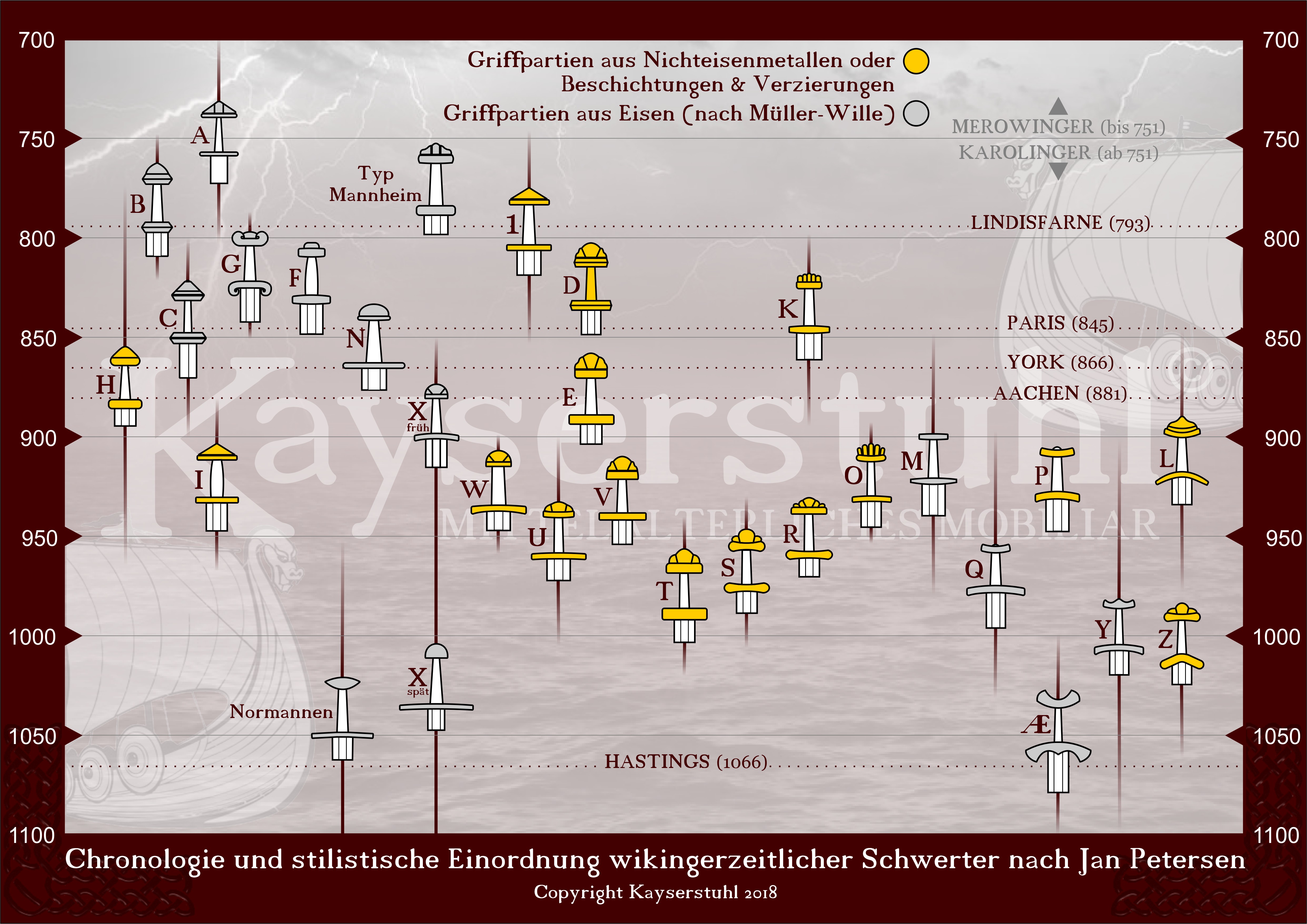 Ihr findet frühmittelalterliche Schwerter aus dem Zeitraum von ca. 800 n. Chr. bis ca. 1100 n. Chr., also der Epoche der Wikinger und dem beginnenden Hochmittelalter.