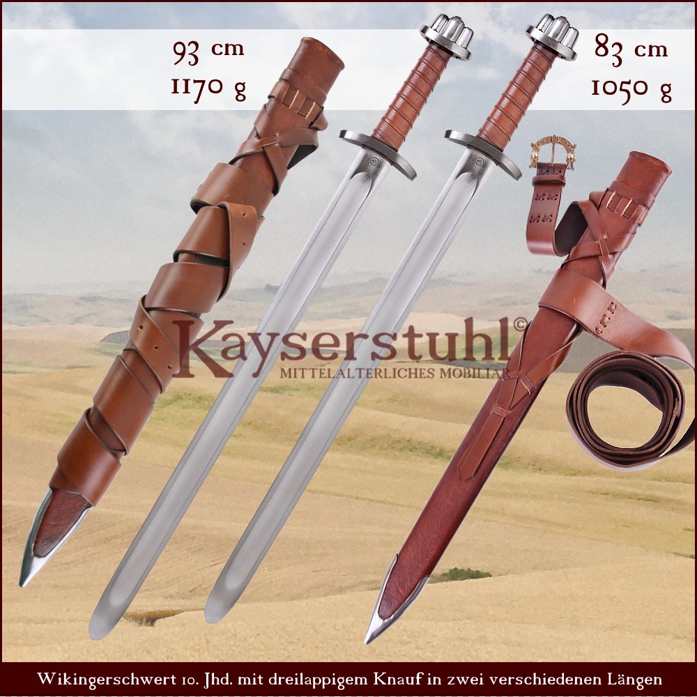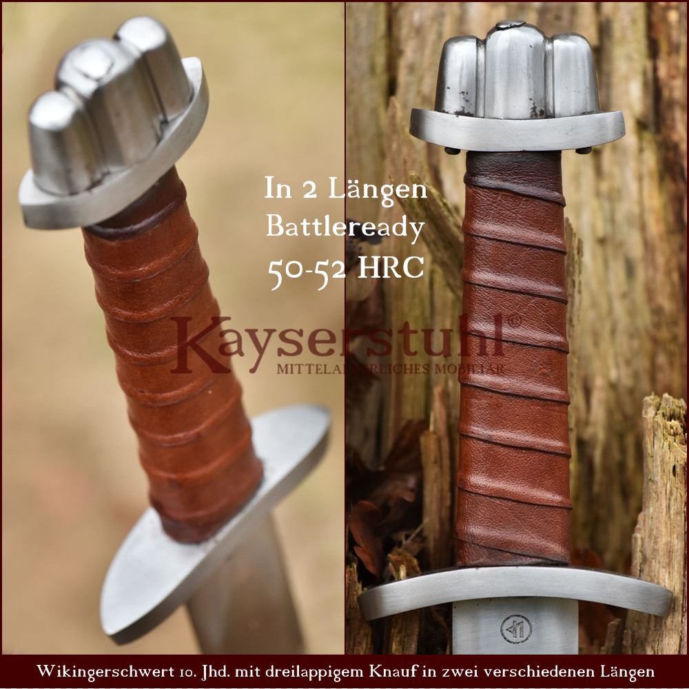 Das Wikingerschwert ist in zwei Klingenlängen (kurz = 64 cm, lang = 74 cm) erhältlich. Die kurze Variante eignet sich hervorragend als Einsteigerschwert und für nicht allzu kräftige Fechter.