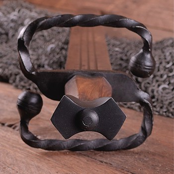 Knauf und Parierstange sind eine Nachbildung eines berühmten Wikingerschwertes, des sogenannten