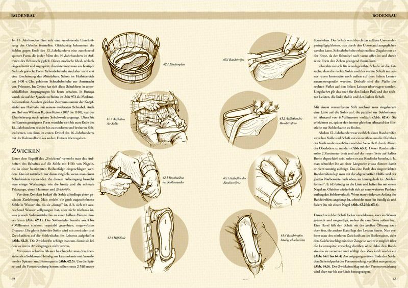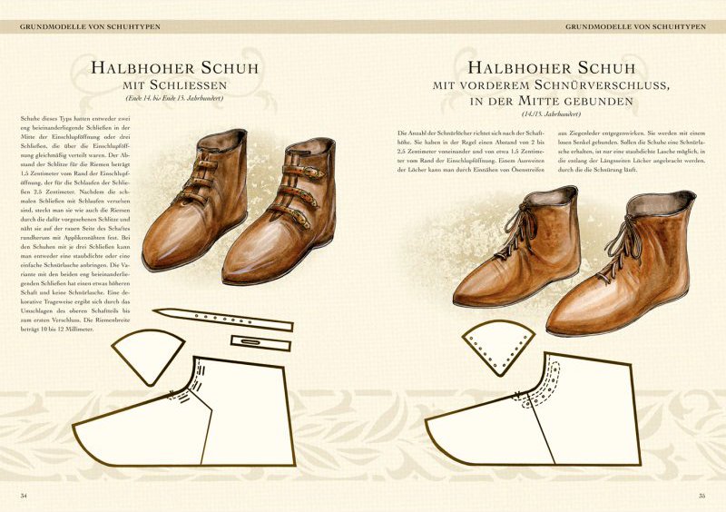 Kleidung des Mittelalters selbst anfertigen – Schuhe des Hoch- und Spätmittelalters bietet einen Leitfaden für handwerklich begabte Menschen, die sich selbst als Schuhmacher versuchen möchten. Schuhmachermeister Stefan von der Heide gibt einen Überblick über die im mittelalterlichen Europa verwendeten Materialien und Werkzeuge zur Schuhherstellung, um den Leser dazu zu befähigen, verschiedene Schuh- und Stiefelmodelle selbst anzufertigen. Außerdem stellt der Autor, neben verschiedenen Schuhtypen und unterschiedlichen Möglichkeiten der Anfertigung, auch Materialempfehlungen und geeignete Bezugsquellen vor.