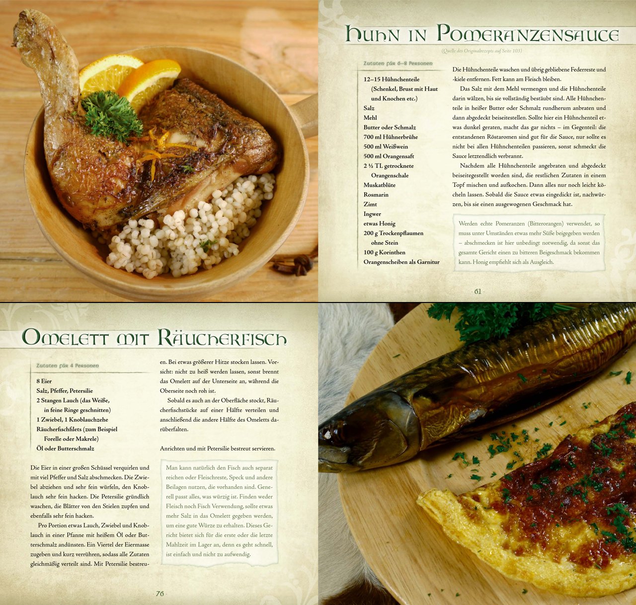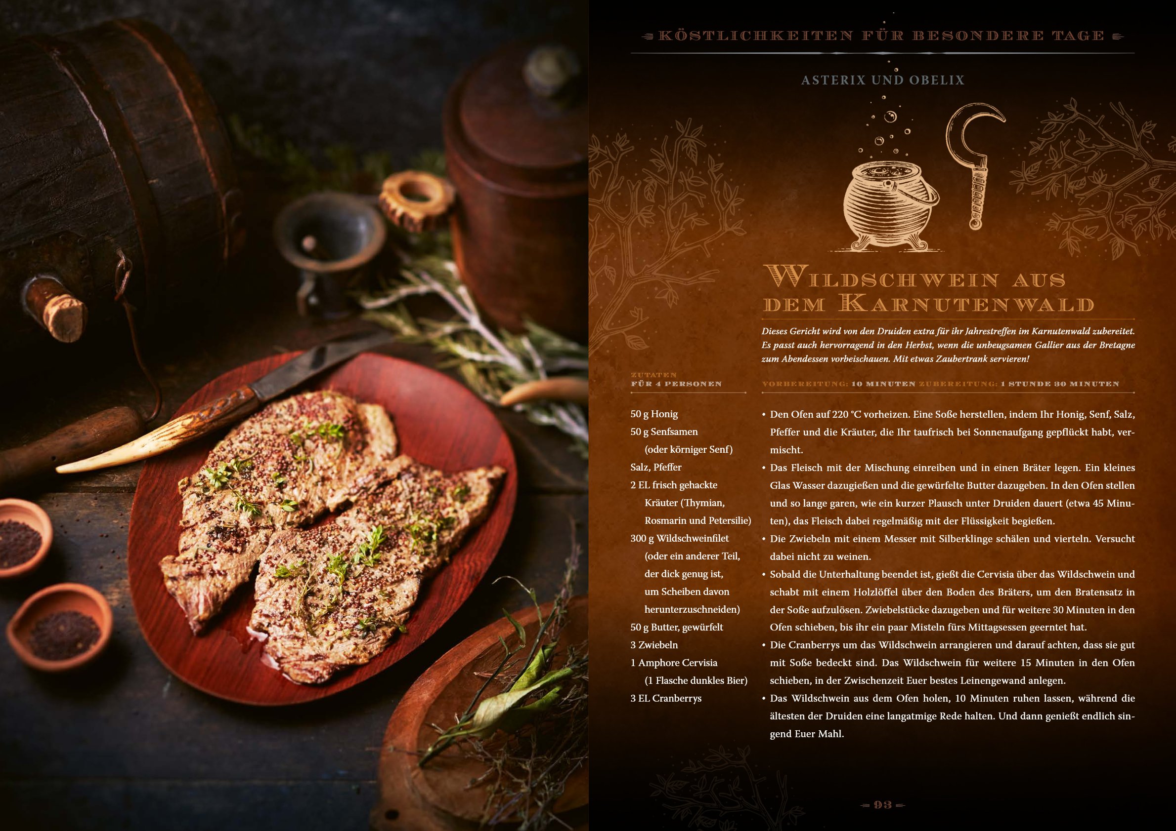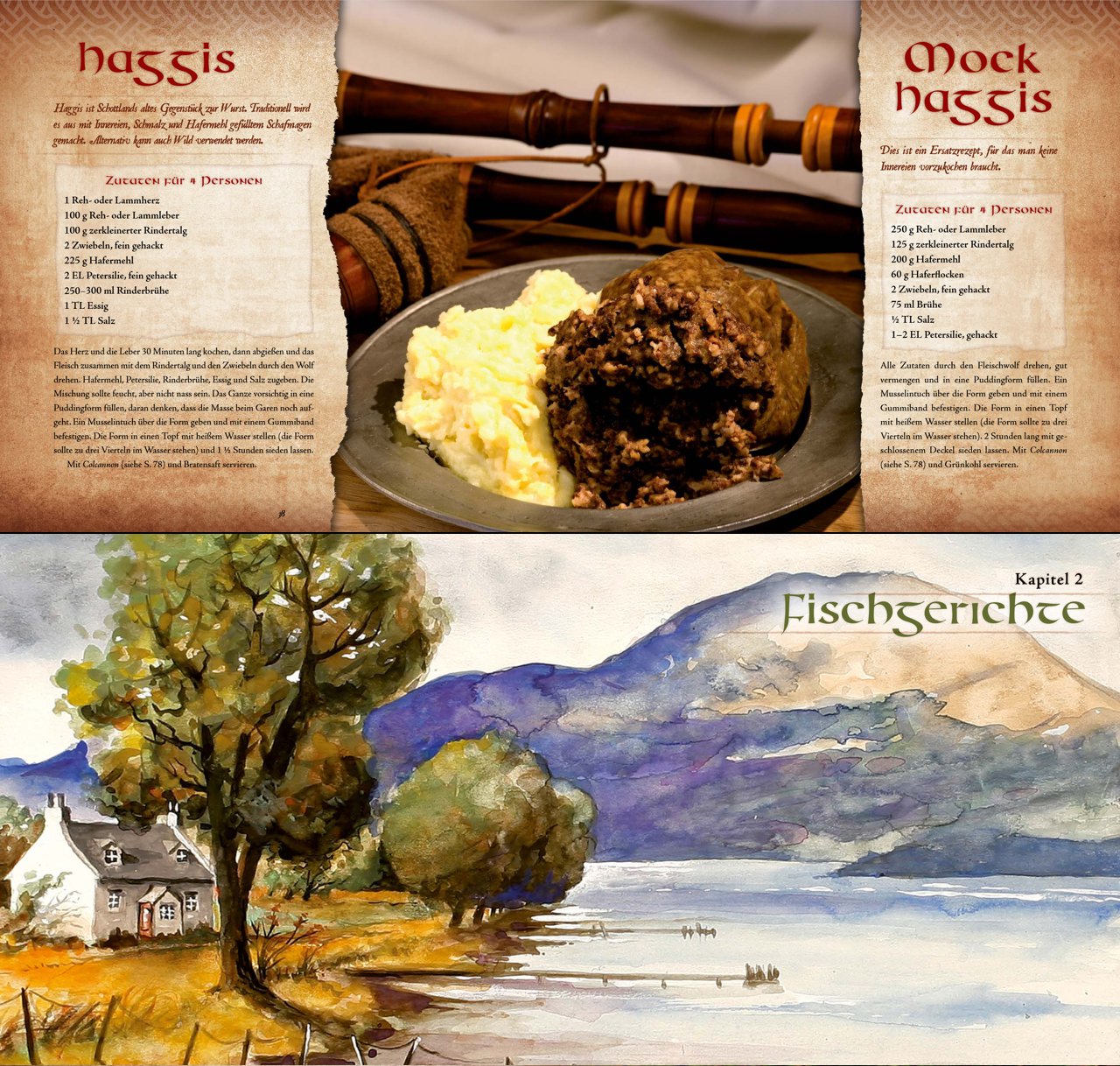 Das Kelten-Kochbuch zeigt sich im prachtvollen Gewand. Es erscheint als edles Hardcover im quadratischen Format und enthält professionelle Fotografien zu einem Großteil der Rezepte. Alle 136 Seiten sind vollfarbig und thematisch passend gestaltet, damit bereits beim Blättern der Funke des keltischen Lebensgefühls überspringt.