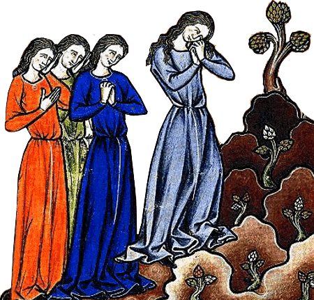 Bild oben: Samariterin am Jakobsbrunnen, Hortus Delicarum, Herrad von Landsberg, ca. 1180 n. Chr.