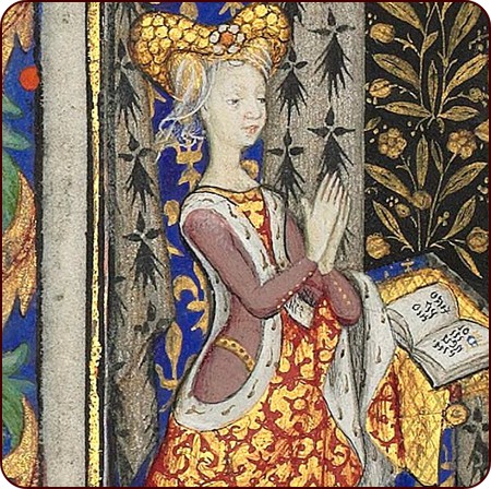 Bild oben: Maria von Brabant, Chroniques de France ou de St. Denis, British Library Royal MS 20 C VII, fol. 10