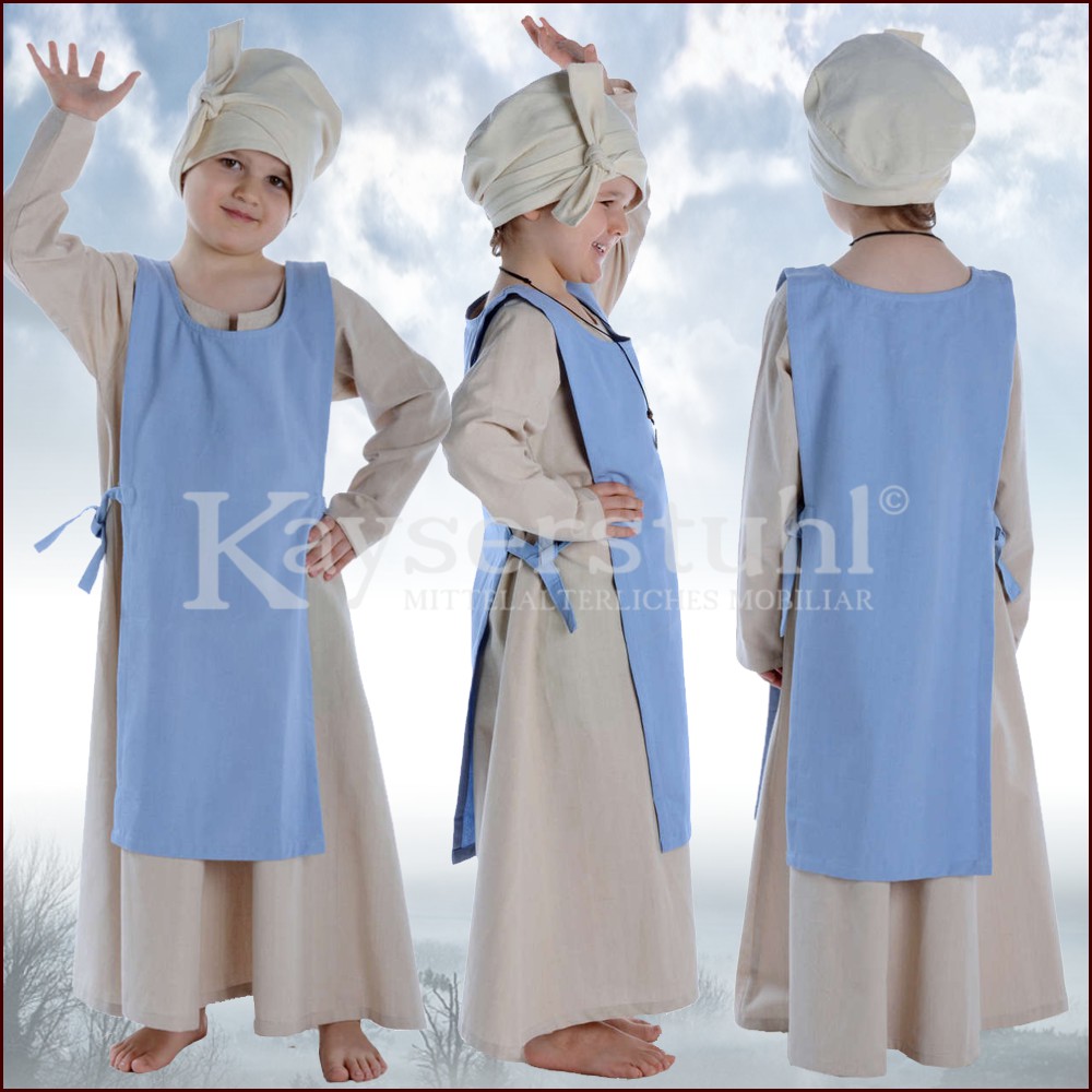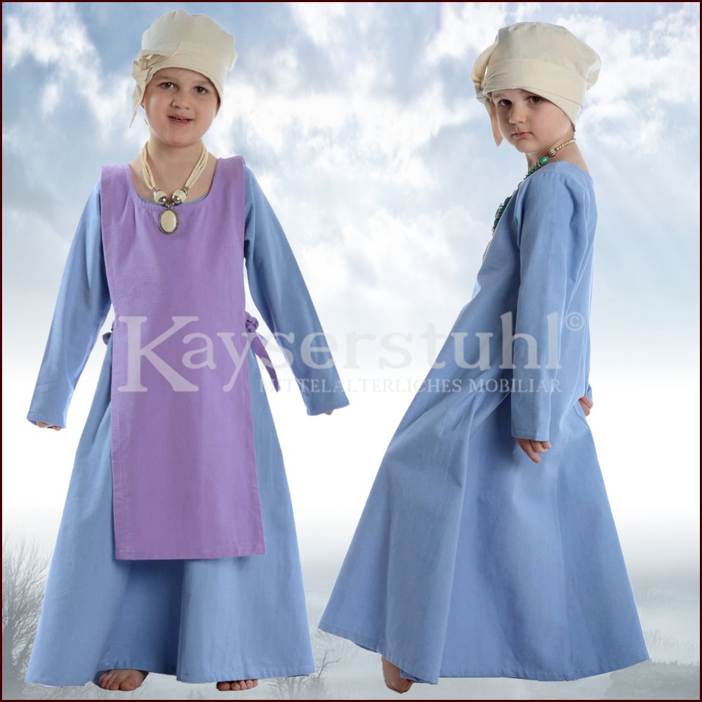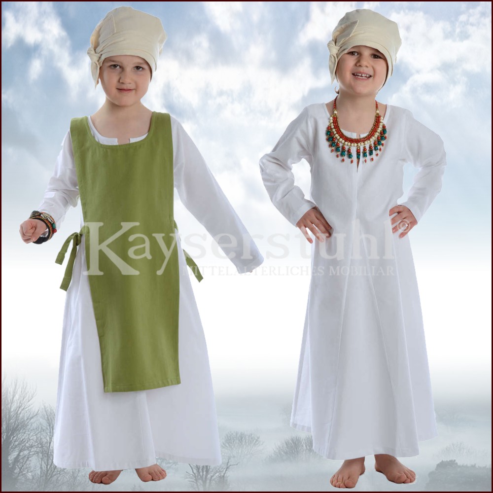 Mädchen im Mittelalter: Mädchen trugen oft Waden- oder knöchellange Kleider. Die Kleidung war meist eher zweckmäßig und einfach gehalten, dennoch dem Stand der Eltern angepasst. Mädchen trugen häufig Mittelaltergewandungen mit gleichen Schnitte wie die von Erwachsenen.