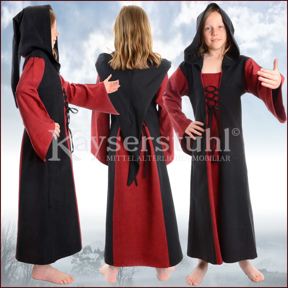Mittelalter Kinderkleid "Ronja", schwarz/rot *