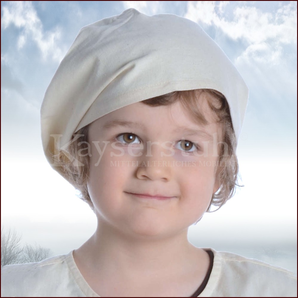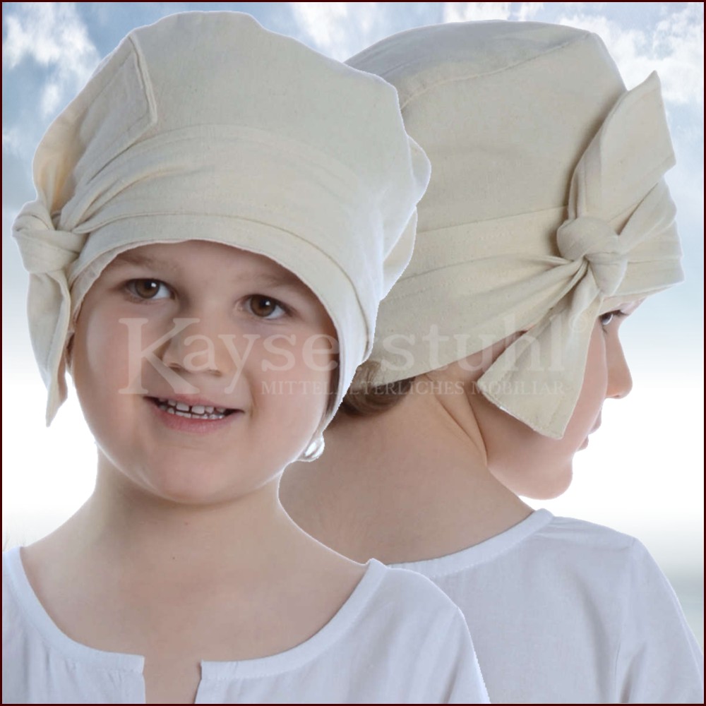 Süße Haube aus 100% Baumwolle im mittelalterlich historisierenden Stil.