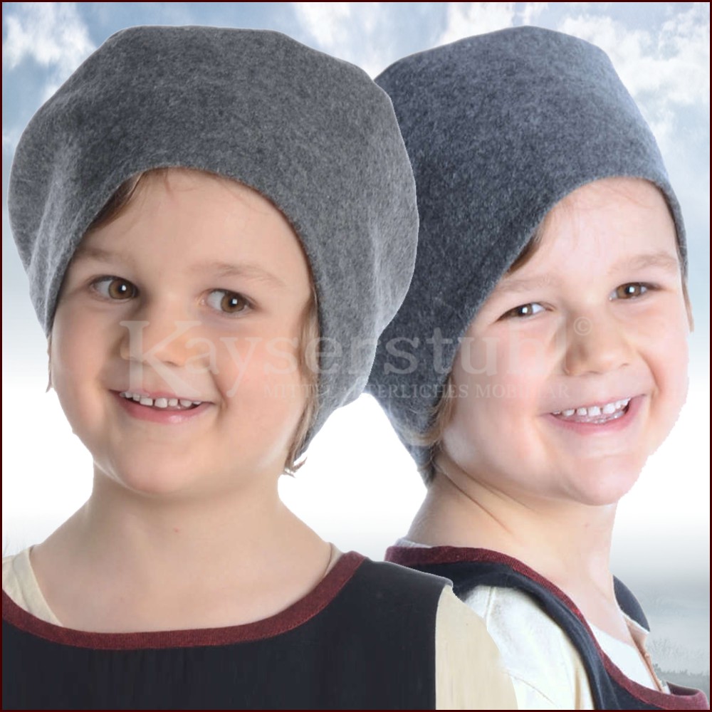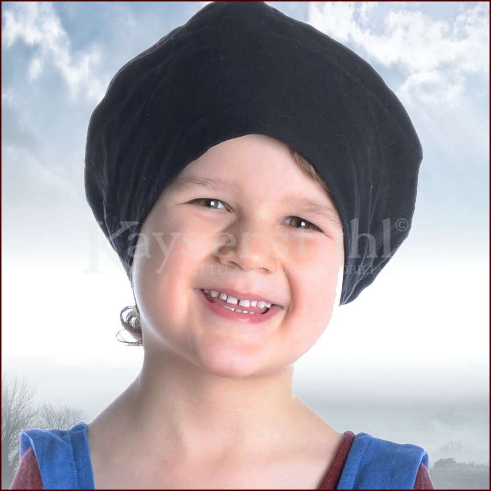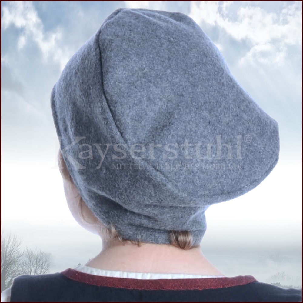 Süße Haube aus 100% Wolle im mittelalterlich historisierenden Stil.
