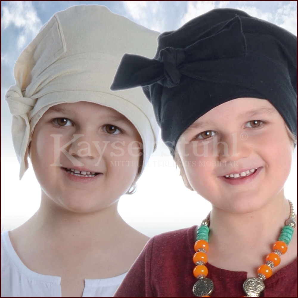 Mittelalterliche Haube mit Schleife in natur oder schwarz