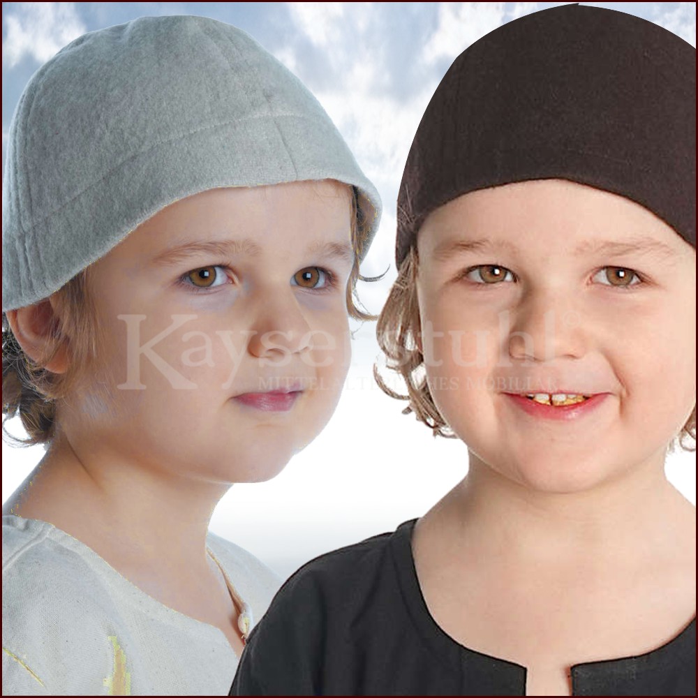 Unsere mittelalterliche Kappe ist eine eng anliegende und schlichte Rundkappe. Sie wird aus vier Teilen genäht, um die perfekte runde Passform am Kopf zu gewährleisten. Durch den wärmenden Wollfilz und den Schnitt der Kappe ergibt sich ein hoher Tragekomfort.