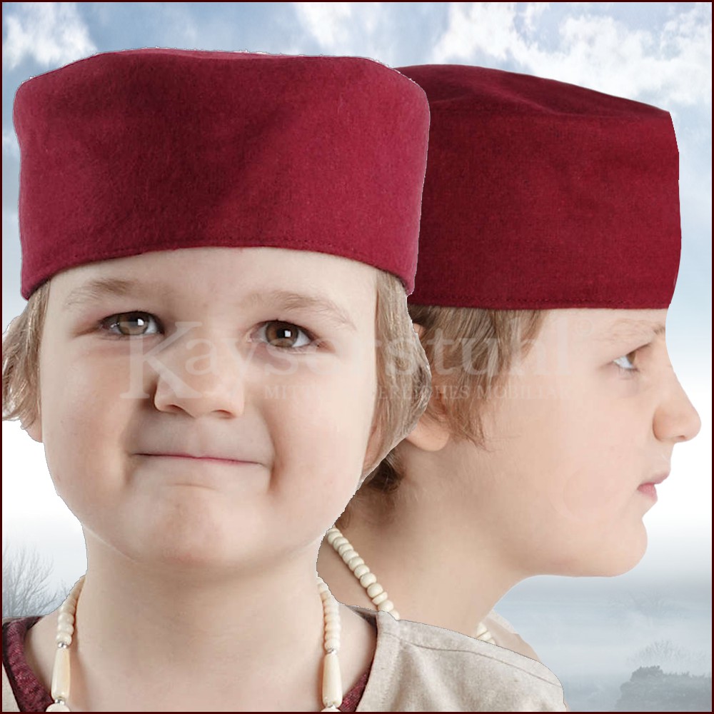 Mittelalterliche Pillbox (Piläus) aus Wolle, rot