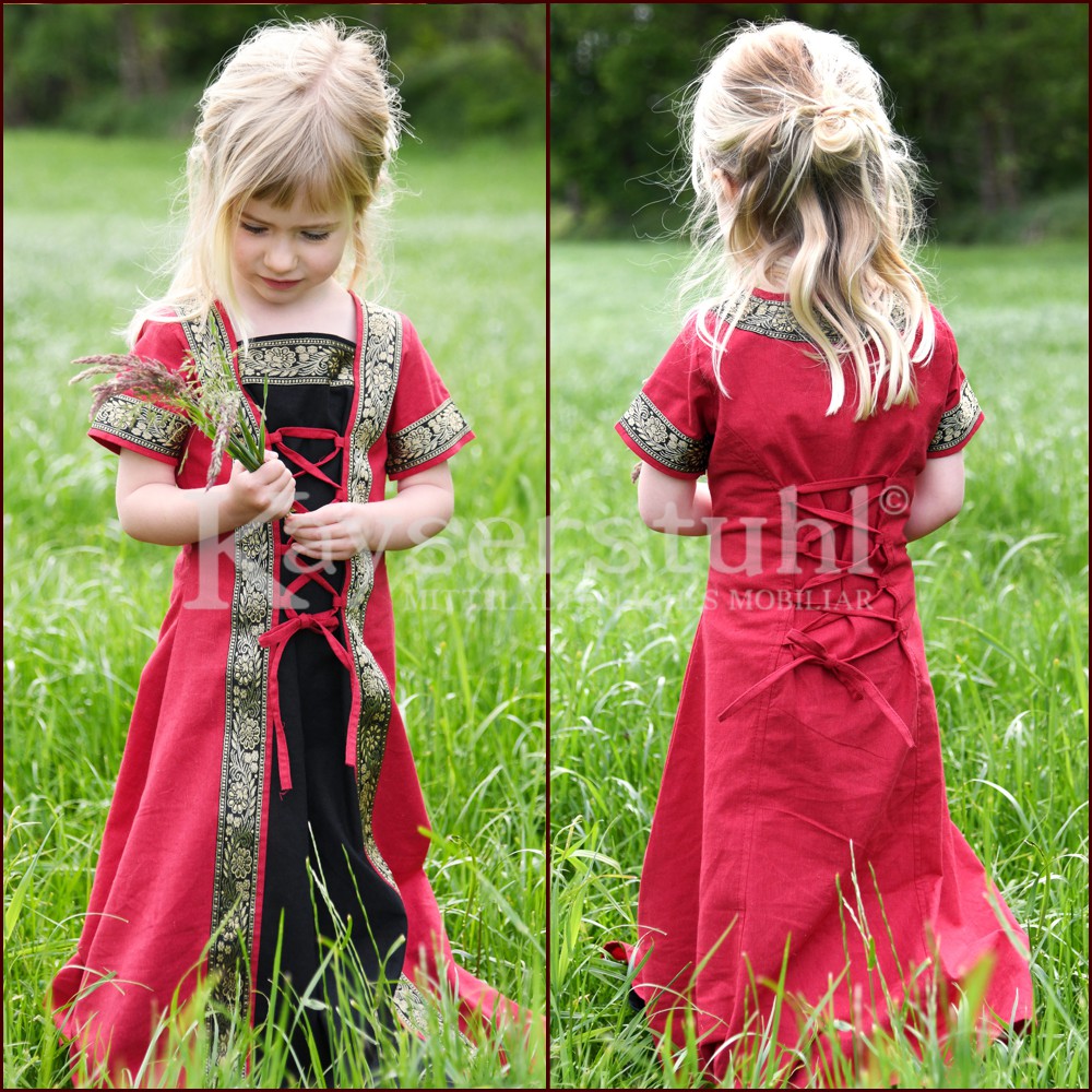 Bild oben: Mittelalterliches Kinderkleid "Anna" in 4 Farben und je 4 Größen