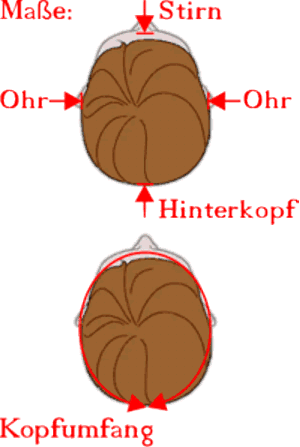 Langer Innenabstand (Hinterkopf-Stirn): Maße folgen