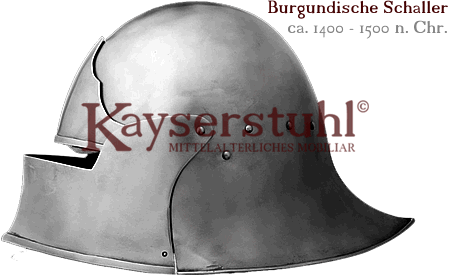 Die burgundische Schaller, die zum Teil in Italien gefertigt wurde, besitzt einen vergleichsweise kürzeren Nacken und fast immer ein vollständiges Visier.