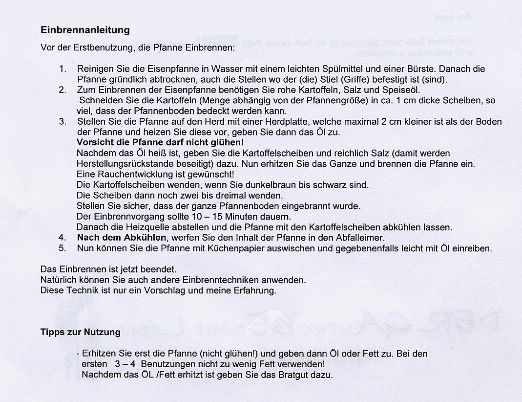 Nieten an der Pfanne befestigt. Die Pfanne hat - wie das Original - einen seitlichen Fettausguss.