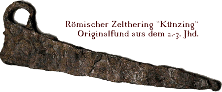 Handgeschmiedeter Zelthering nach römischen Vorbildern ähnlivh Hedemünden, allerdings wesentlich einfacher ausgeführt.