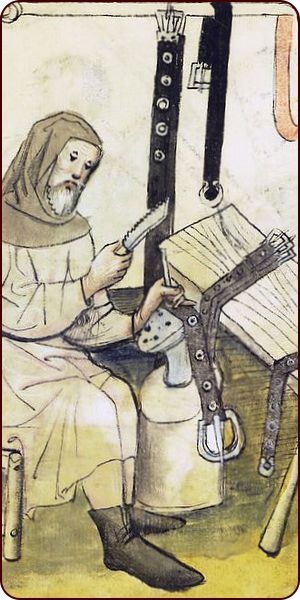 Bild rechts: Gürtler im Hausbuch der Mendelschen Zwölfbrüderstiftung zu Nürnbergg, um 1414 (Stadtbibliothek Nürnber, Amb. 317.2°, fol. 27r.) |