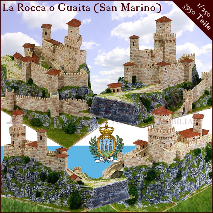 Die auf dem Monte Titano gelegene Hauptstadt der Republik San Marino wurde zur Stadtverteidigung von drei Burgen geschützt, der Rocca Guaita, dem Castello della Cesta und dem Torre Montale, die auf den Felsgipfeln des Berges stehen.