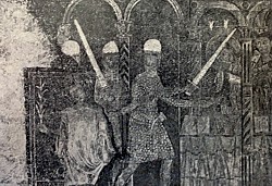 Iwein-Fresko mit Helm 01 (1220-1230 n. Chr.)