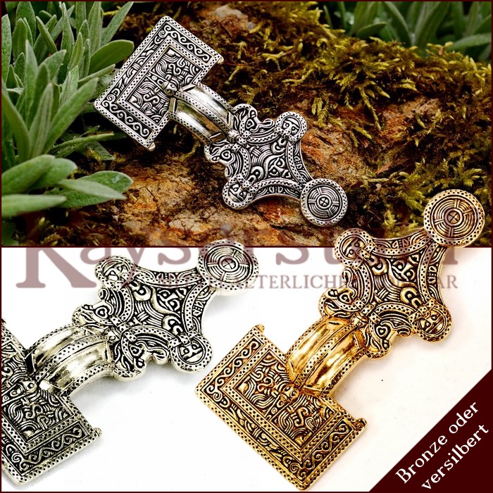 Sehr schöne Replik einer Fibel im Urnes-Stil aus dem 11. Jh. aus dem Ort Tröllaskogur auf Island. Dieses Schmuckstück gilt als eine der schönsten erhaltenen Urnes-Fibeln. Die Tröllaskogur-Fibel zeigt ein großes Tier mit geschwungenem Nacken und deutlich erkennbaren Vorderfüßen, wobei der Leib in zwei Schwänzen endet und dazu zwei Schlangen, die sich um Hals und Füße winden und ist ein excellentes Beispiel für den Tierstil der zu Ende gehenden Wikingerzeit. Den Namen erhielt dieser Stil von der bekannten Stabkirche im norwegischen Urnes.