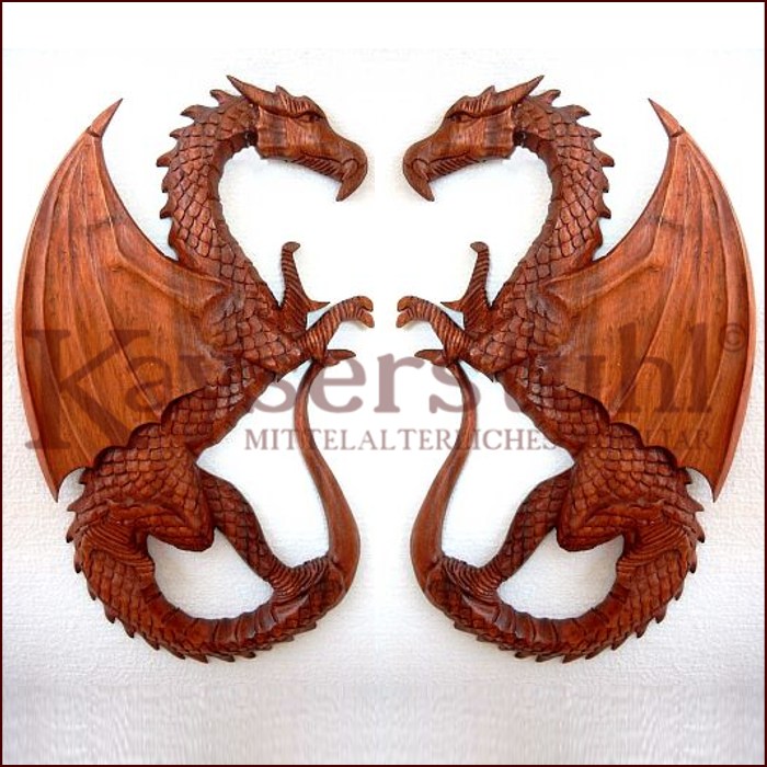Handgeschnitzter Wandschmuck, aus unserer Sicht auch bedingt zur Verzierung von Möbeln oder Zelten geeignet. Diese Verzierung ist in zwei Ausführungen erhältlich, nach rechts oder nach links blickend.