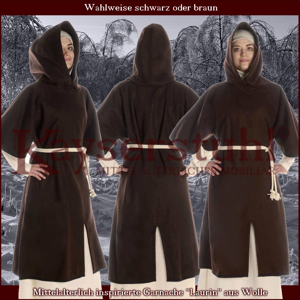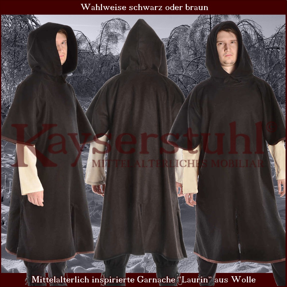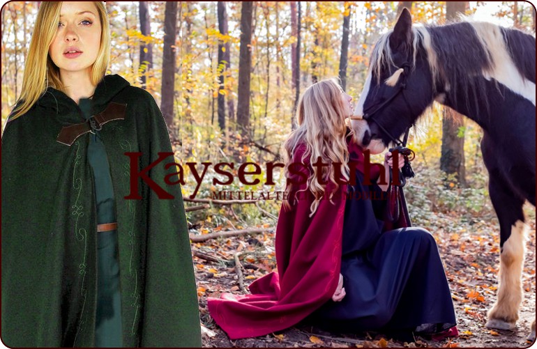 Ihr findet hier Umhänge, Mäntel, Klappenmäntel, Capes, Pellerinen, Garnaches und Paenulas für Darstellungen von der Spätantike bis in die frühe Neuzeit und natürlich auch LARP und Fantasy.