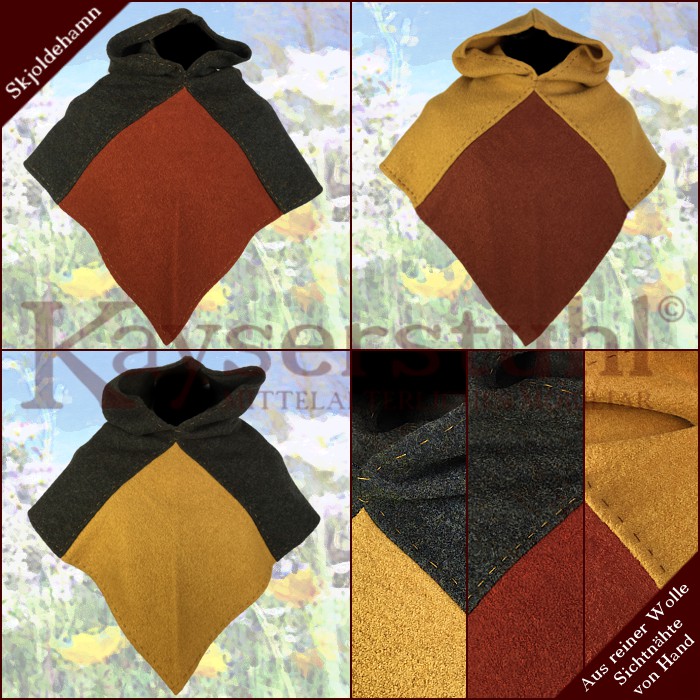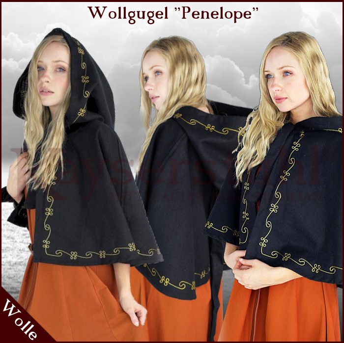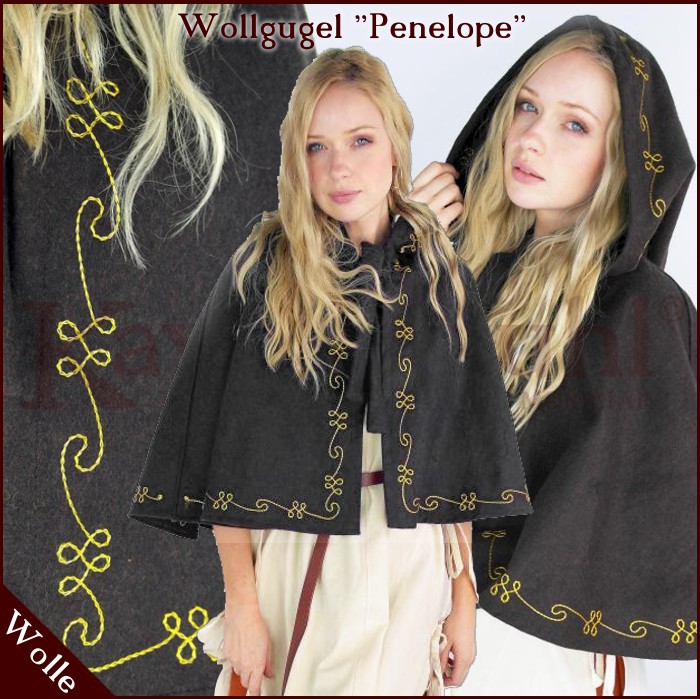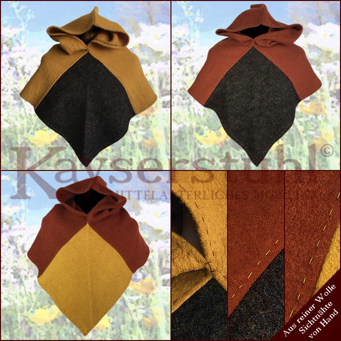 Unsere Umhänge & Gugeln bestehen in der Regel aus Woll-Mischgeweben mit hohem Wollanteil, einige wenige aus Baumwolle.