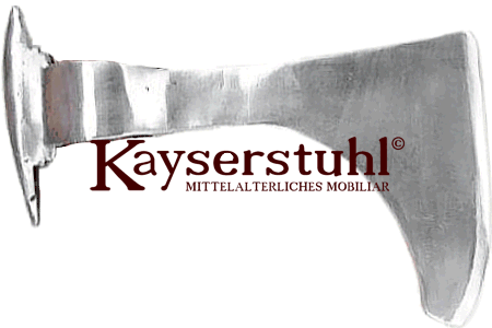 Handgeschmiedetes Axtblatt aus hochwertigem Kohlenstoffstahl. Es ist optimal für den Schaukampf geeignet. Die Schneide ist stumpf und die Kanten sind abgerundet, um Schädigungen gegnerischer Waffen und Rüstung möglichst zu vermeiden. Das Axtbatt ist bewußt nicht poliert. Die durch das Schmieden entstandenen Hammerspuren verleihen dem Axtblatt ein rustikales Aussehen.