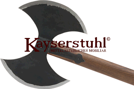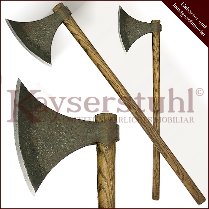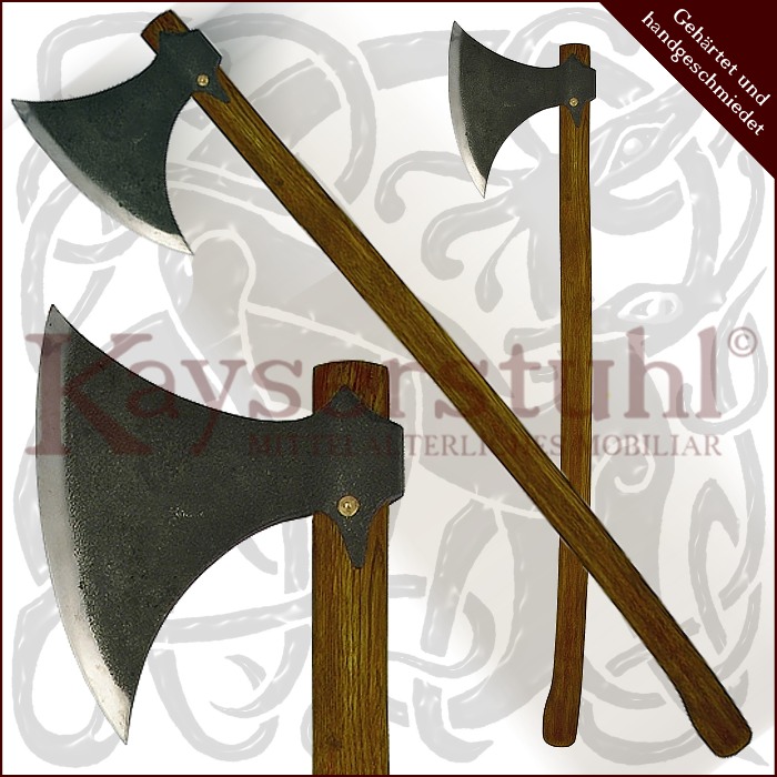 Eher dekorative aber sehr schöne mittelalterliche Bartaxt. Das Axtblatt ist nicht sonderlich scharf, aber die Enden sind sehr spitz.