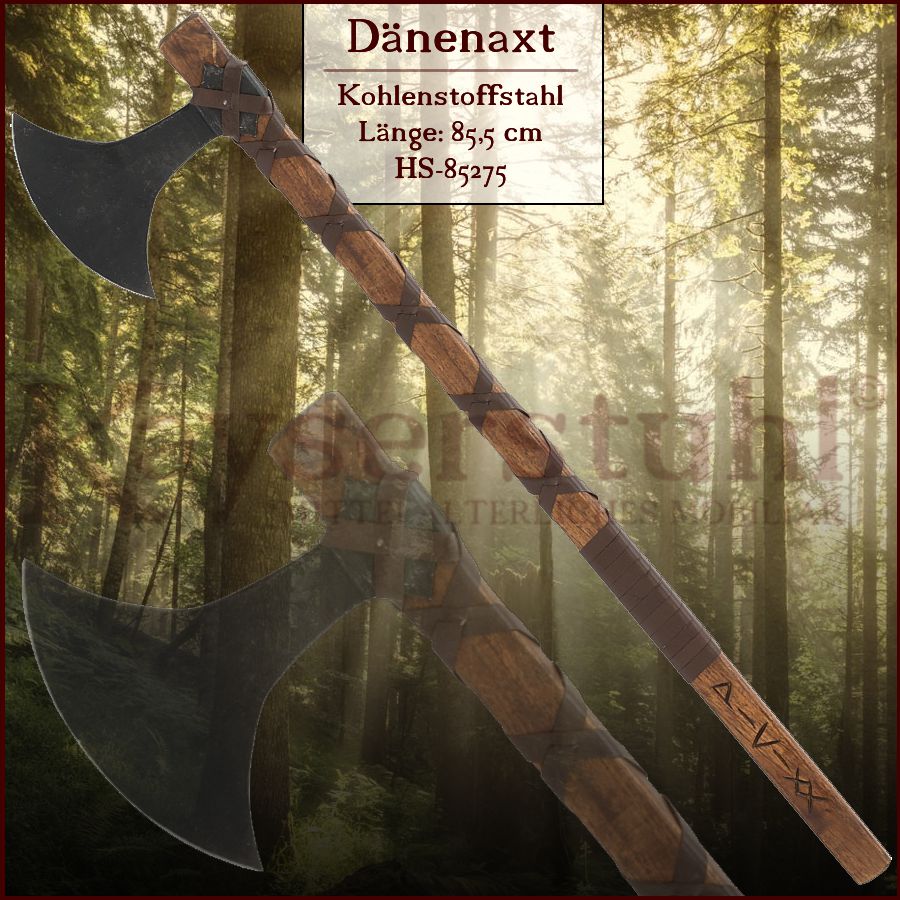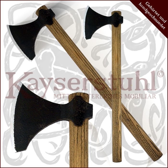 Ihr findet hier früh-, hoch- und spätmittelalterliche Äxte sowie Axtblätter ohne Schaft. Im Sortiment führen wir Wikinger-Langäxte, slawische Äxte, Streitäxte, Kriegsäxte, Dänenäxte, Franziskas sowie Doppeläxte und repräsentative Waffen wie die Mammenaxt.