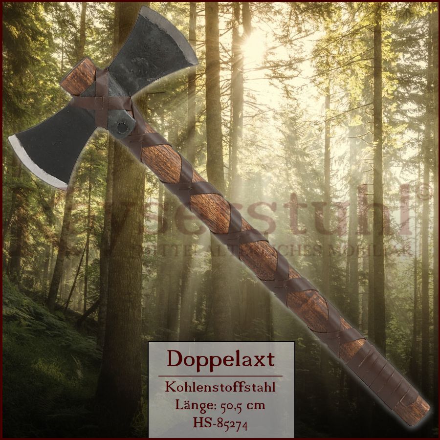 Die Doppelaxt war vorgeblich die Waffe des gallisch-keltischen Fürsten Vercingetorix, war aber vor allem als sogenannte Labrys (Kultgerät während der minoischen Kultur im 3. und 2. Jahrtausend v. Chr.) auf der Mittelmeerinsel Kreta in Gebrauch.