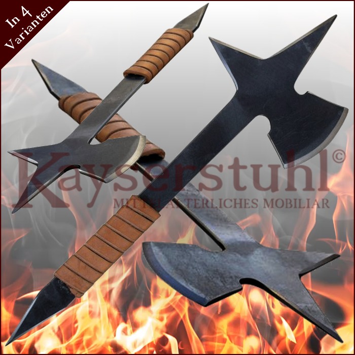 als Nahkampfwaffe beliebt. Das Axtblatt ist nicht geschärft und der Dorn ist stumpf.