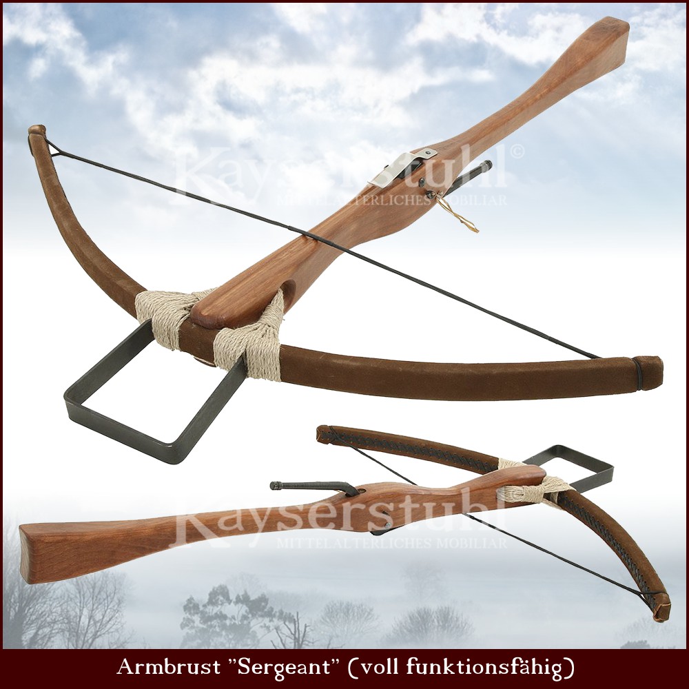 Ihr findet bei uns hochwertige voll funktionsfähige und aufwändige funktionell dekorative mittelalterliche Armbrüste. Passend dazu haben wir eine schöne Auswahl an belegorientierten Armbrustbolzen sowie weiteres Zubehör für ein schönes Reenactment-Display.