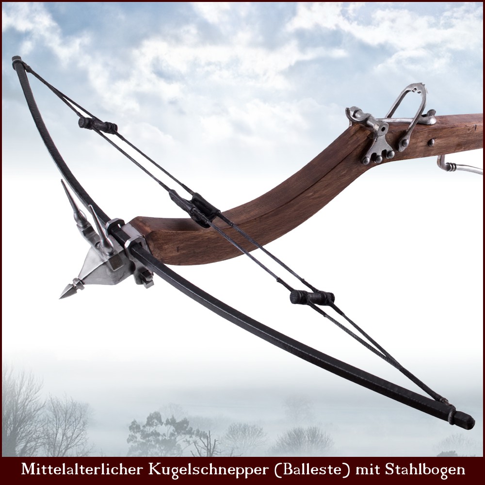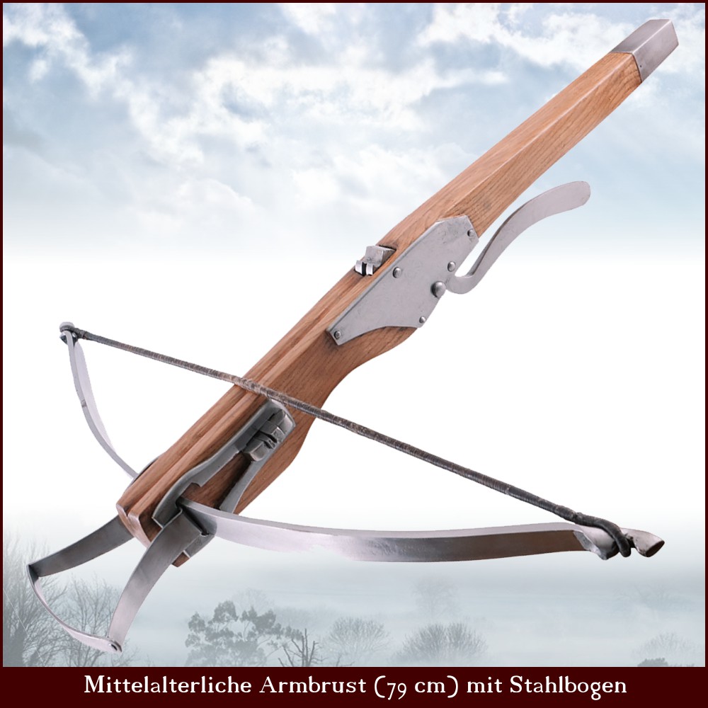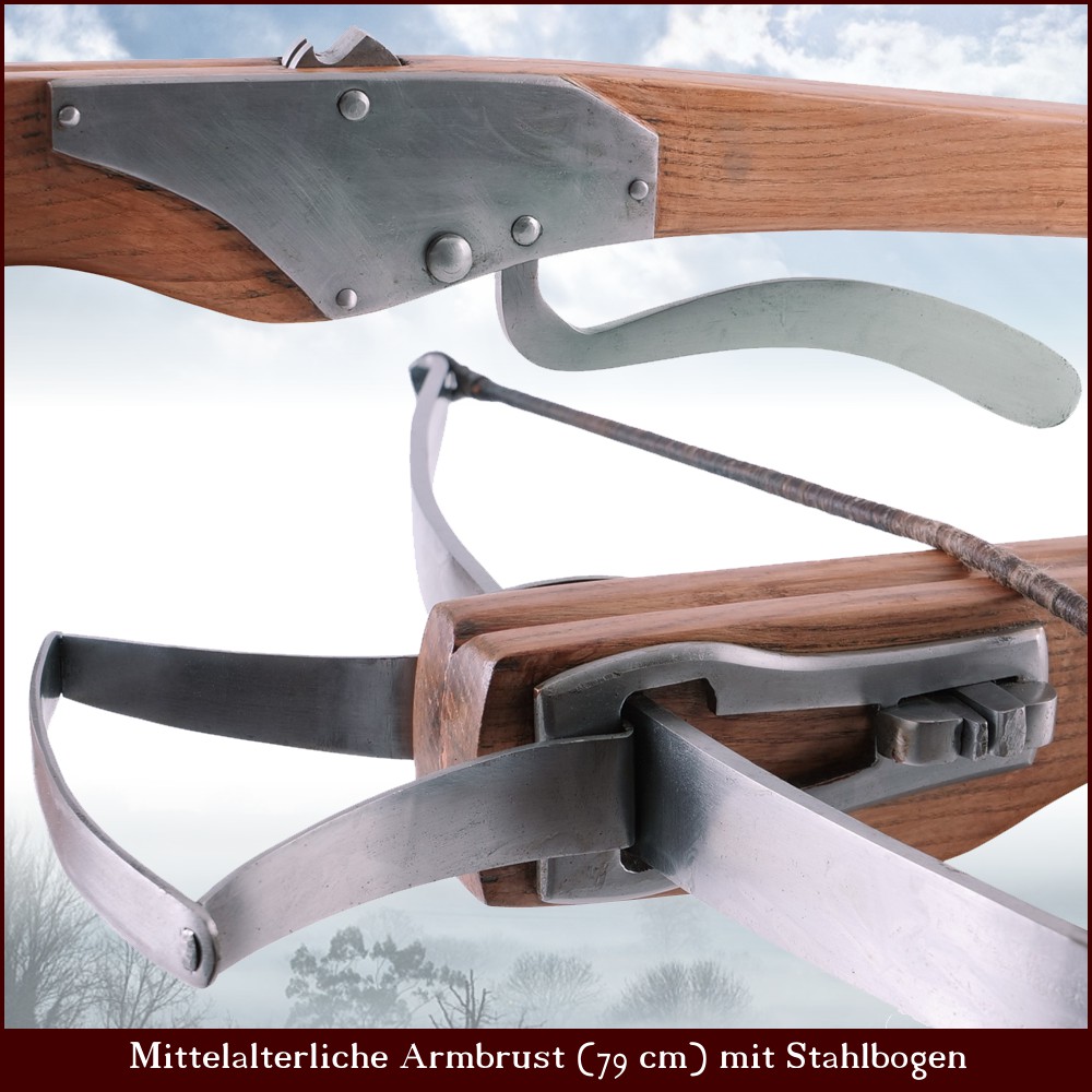 Mittelalterliche Armbrust (79 cm) mit Stahlbogen