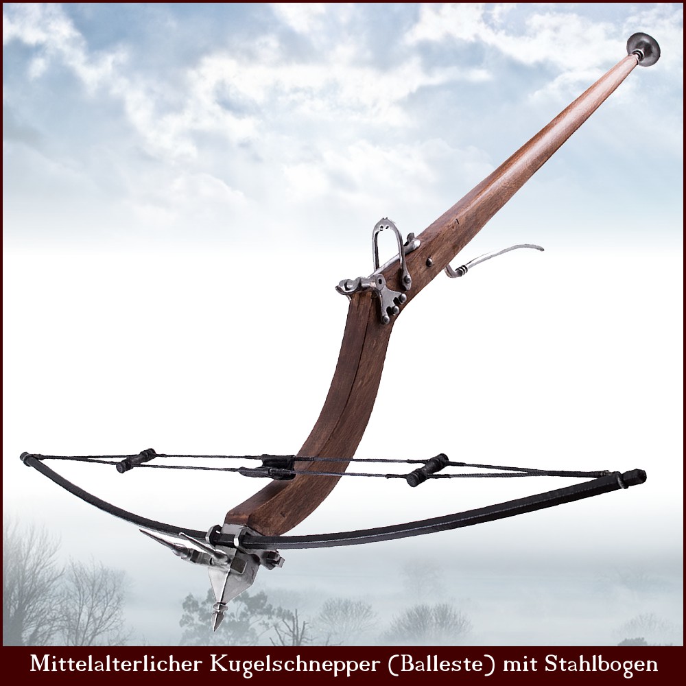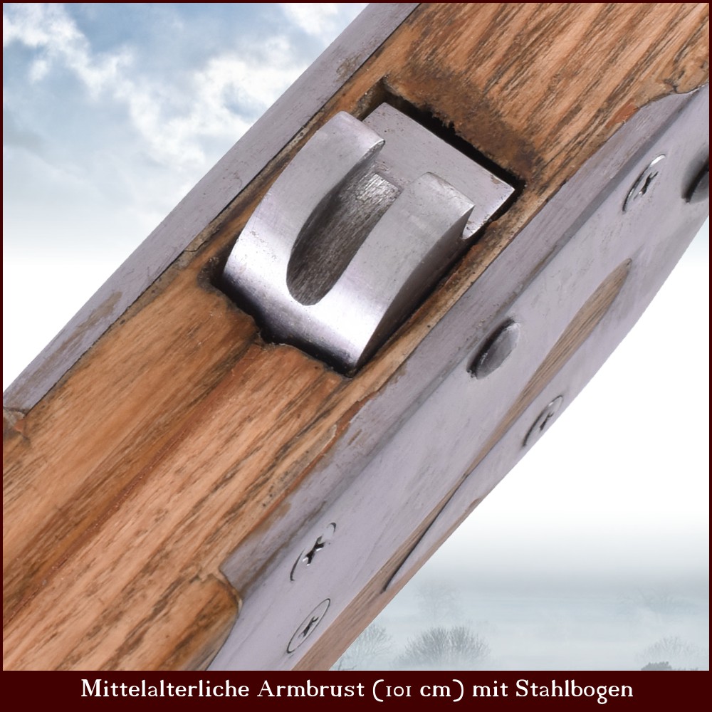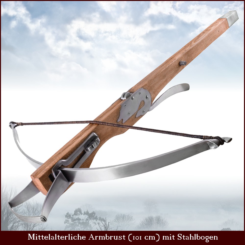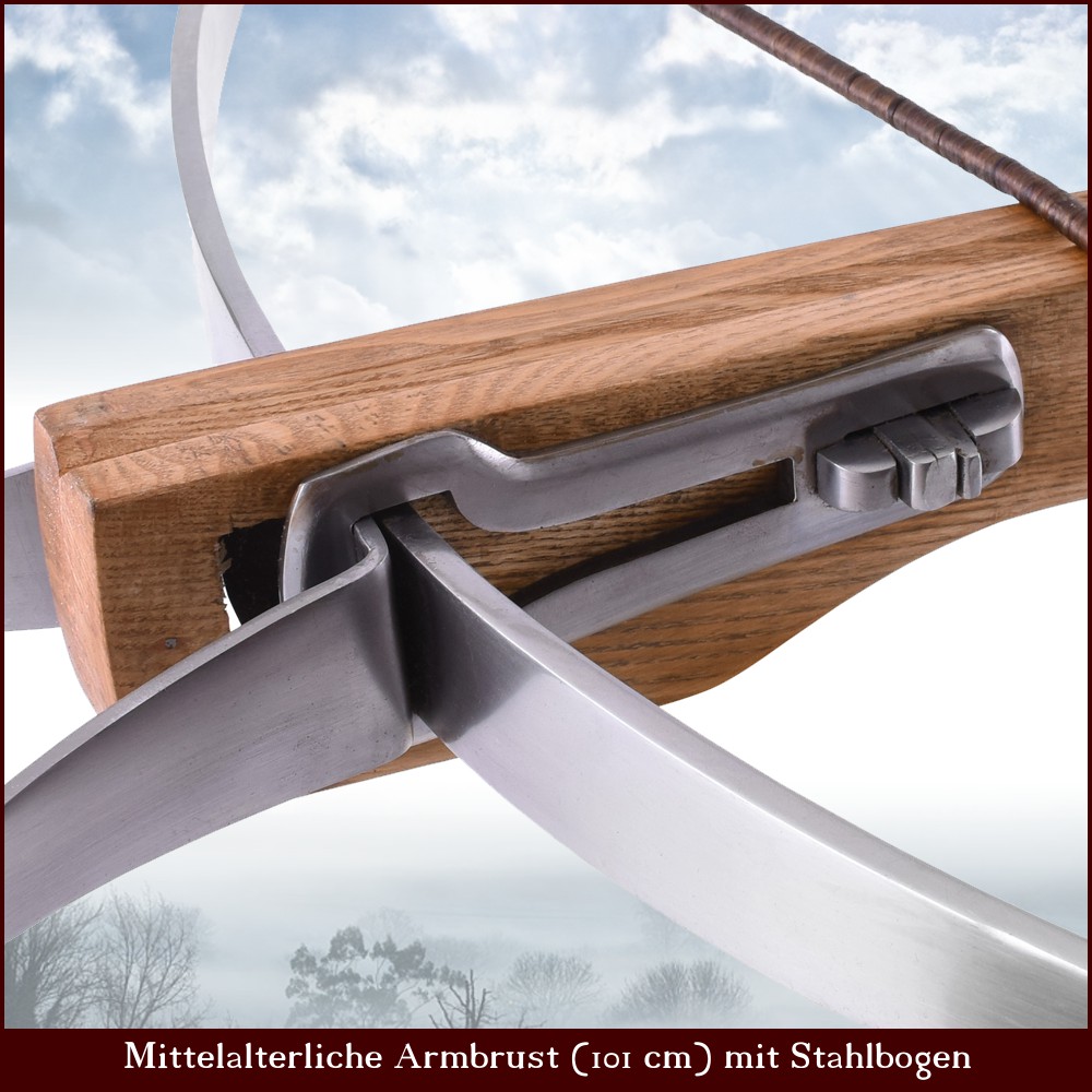 Mittelalterliche Armbrust (101 cm) mit Stahlbogen