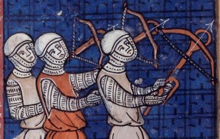 Bild oben: Armbrustschütze mit englischer Winde (Schlacht von Crécy, 1346), "Chroniques" von Jean Froissart (1337-1405), freigestellt von Kayserstuhl