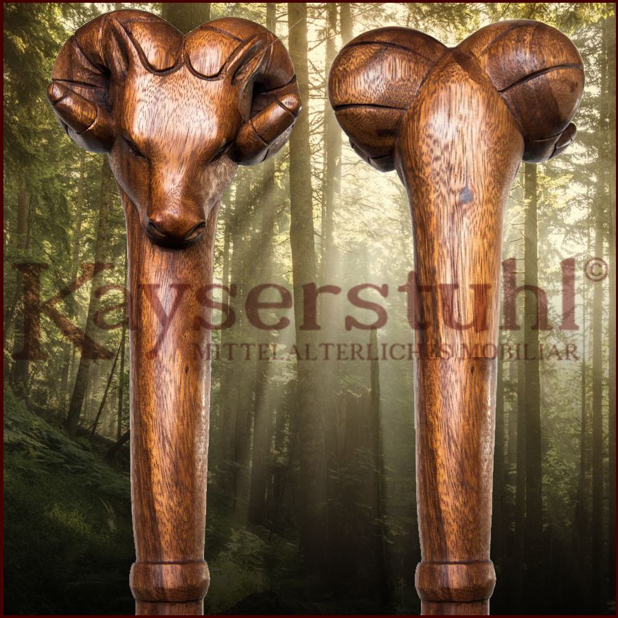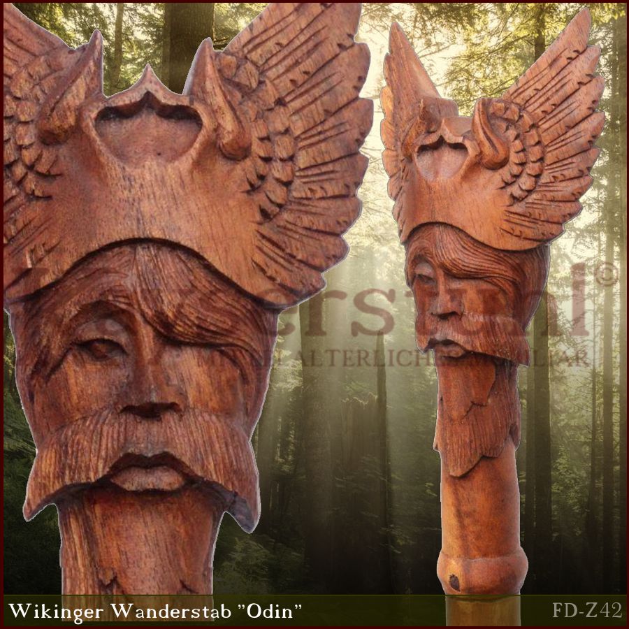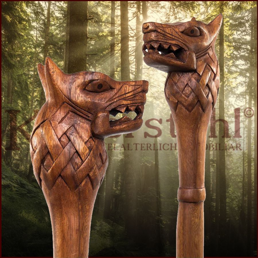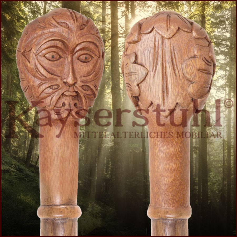 Ihr findet hier handgefertigte Wanderstäbe, Pilgerstäbe oder je nch Interpretation Magierstäbe unterschiedlicher Länge mit mittelalterlichen oder heidnischen Formen. Ausserdem haben wir eine stattliche Menge schöner wikingerzeitlicher bzw. germanischer Motive von Odins Raben über Thors Hammer bis zu anderen Gestalten der nordischen Mythologie.