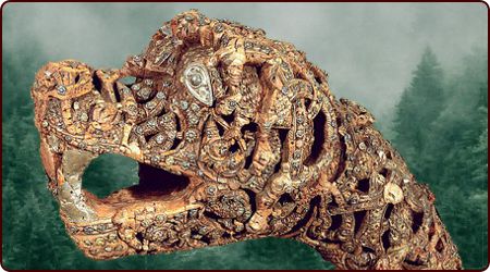 Bild oben: Originalschnitzerei vom Osebergschiff